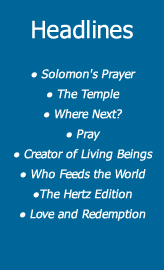 Solomon's PrayerKing Solomon built God's Temple - the only temple dedicated to HaShem - in Jerusalem. Today a Muslim shrine occupies the site. Before that, when the Crusaders held Jerusalem, they turned the site into a garbage dump. Before the Crusaders, the Romans held the city. They built a temple to their chief god, Jupiter (also known as Zeus), atop the Temple Mount. Romans, Crusaders and Muslims, they all wanted to convey the message that they were God's favorites - that they were the true heirs of Solomon. They all wanted to demonstrate that the cause of Israel in the world was kaput. What is the mission of Israel? Solomon described it as follows. See the Bible, I Kings, starting at 8:59.This passage is part of what all observant Israel reads, based on the anciently decreed regular schedule of readings, on the last day of the holiday of sukkot. The Bible calls this day shemini atzeret, the Eighth Day of Assembly (Numbers 29:35). This year it comes up on the sabbath, shabbot, October 14th. At the dedication of the Temple, 2,833 years ago this month, Solomon prayed before the congregation. He speaks of God, to God, asking: